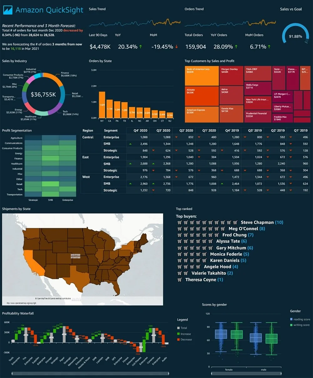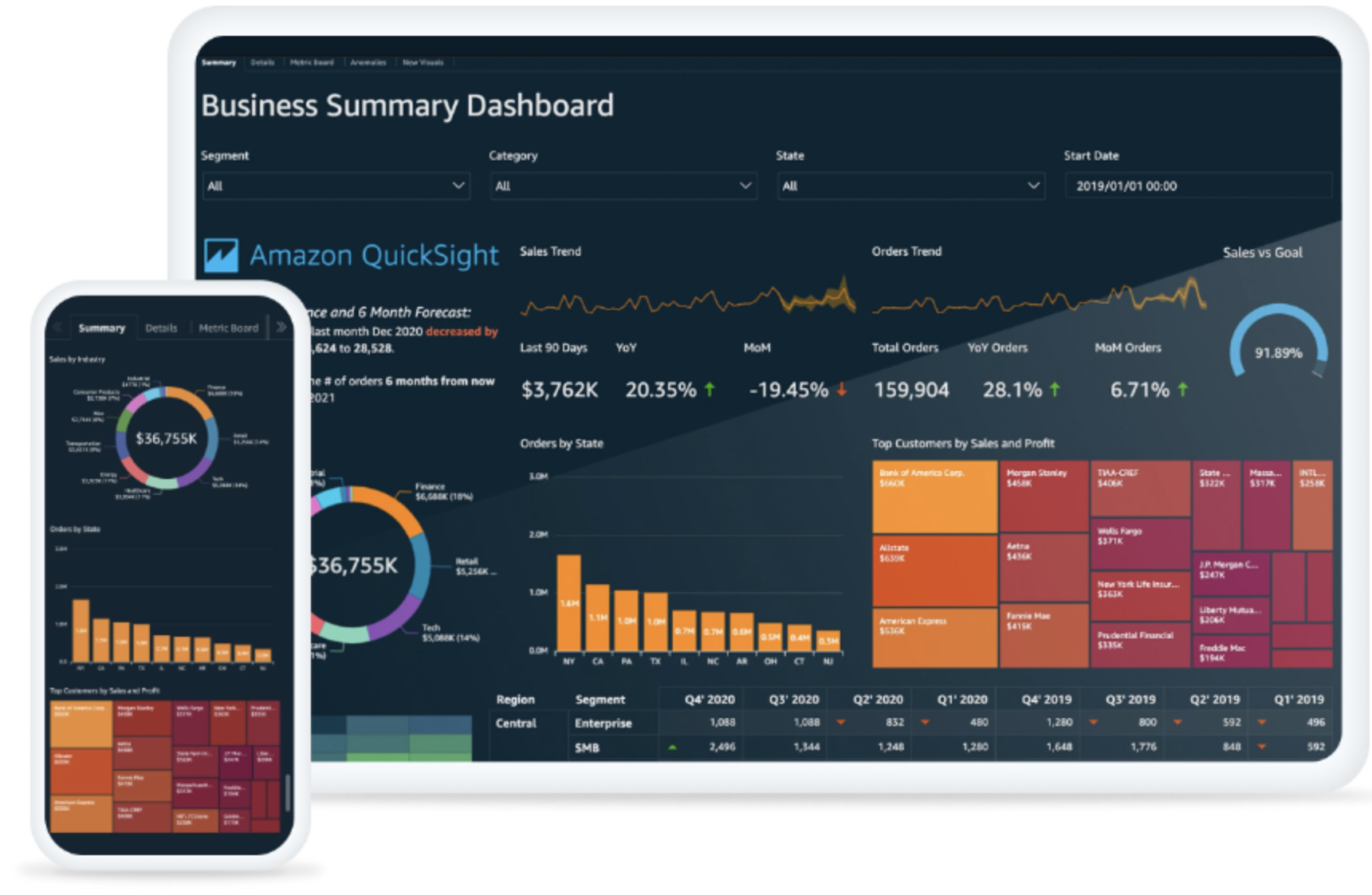 Amazon QuickSight is AWS’s cloud business intelligence service. It features native AWS integration, the SPICE in-memory calculation engine for fast queries on large datasets, industry-first usage-based pricing, and AI powered analytics such as natural language queries, anomaly detection, and predictive insights. It is one of the most successful business application AWS has ever built.